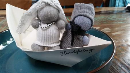 Trouwdag: 2 witchdolls in een (huwelijks)bootje, leuk om een envelop met inhoud bij te voegen.